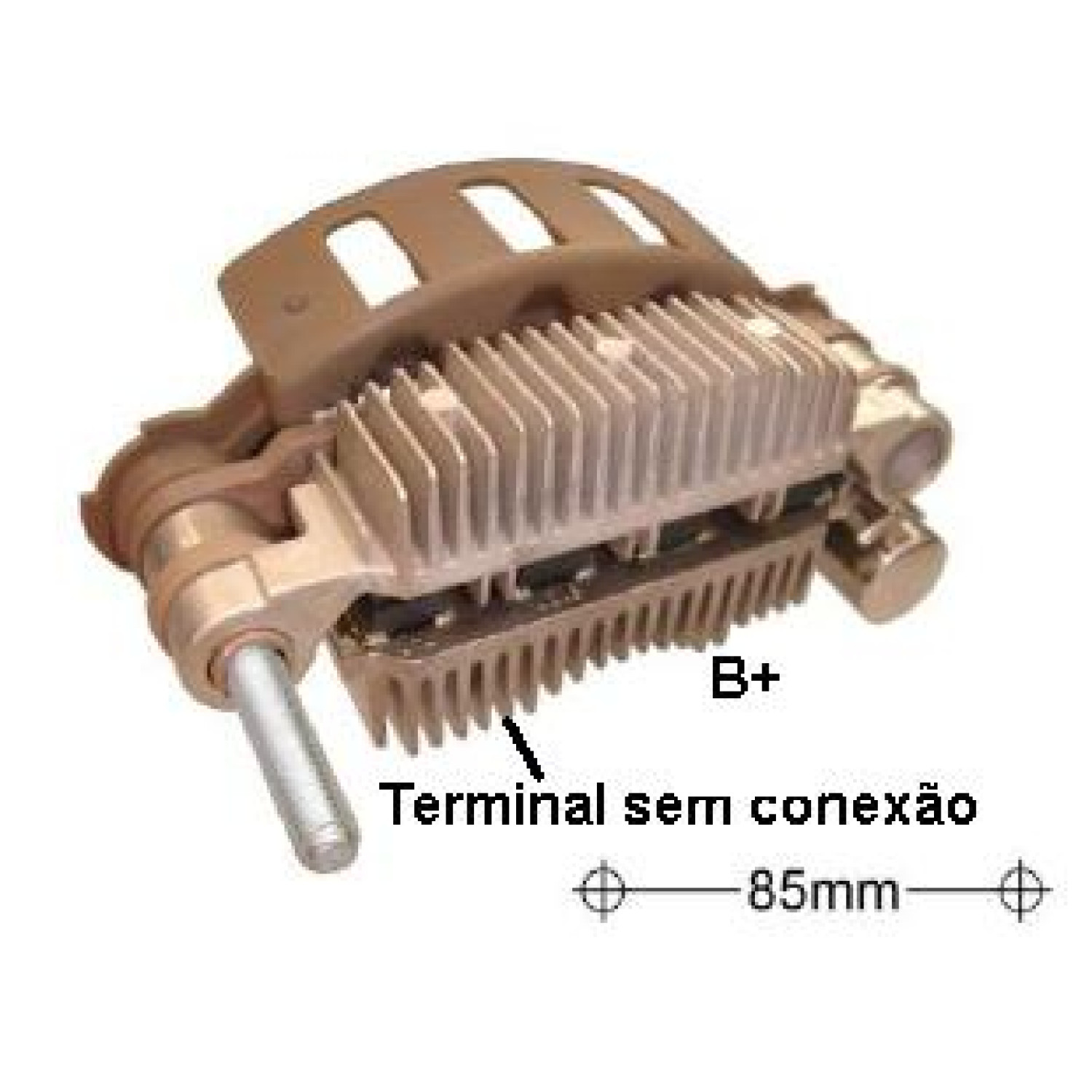 Amperagem Até 105 Amperes, 6 Diodos 35 Amperes cada, com capacitor, sem tríodo.