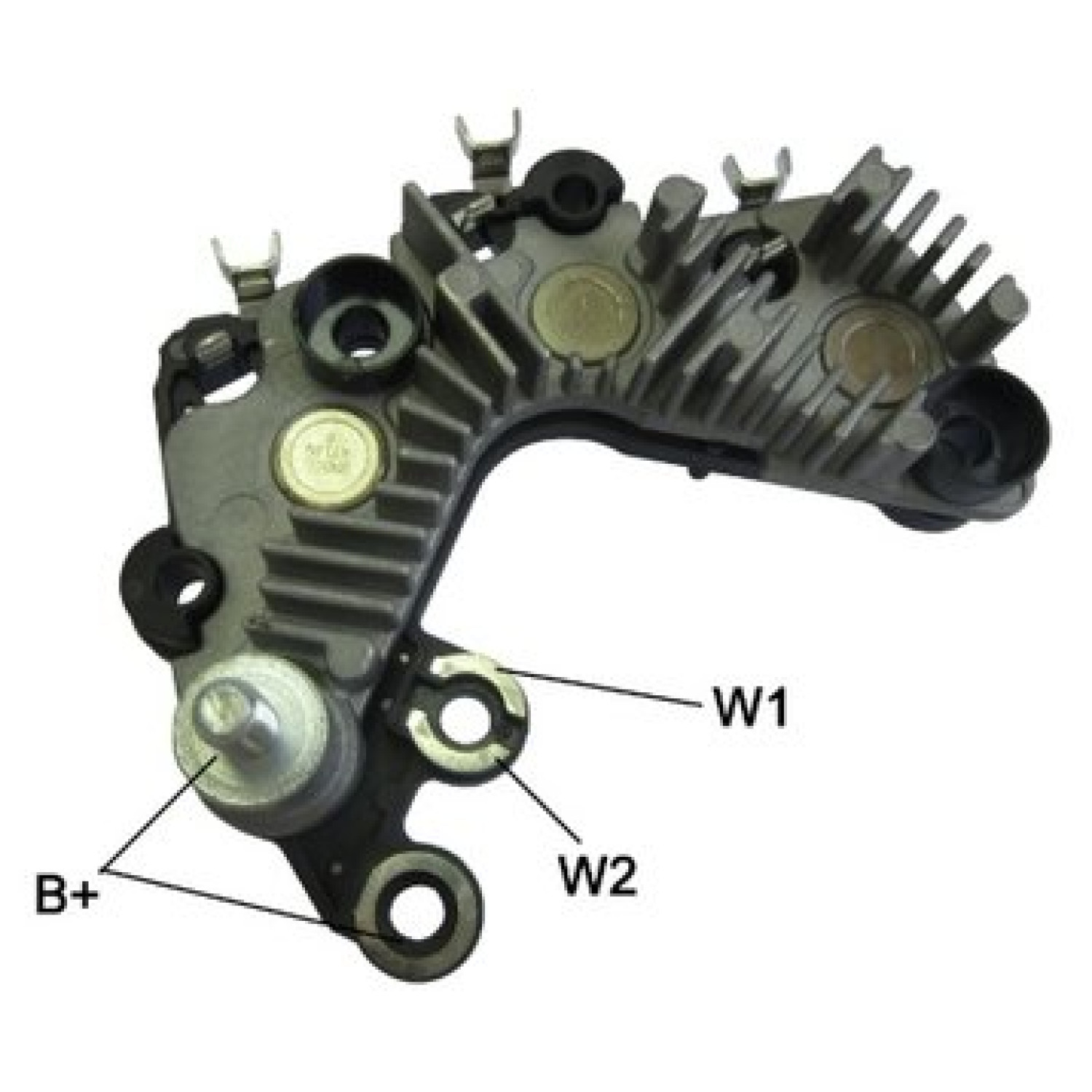 Também conhecido por placa de diodos, o retificador tem a função de transformar a corrente alternada produzida pelo alternador em corrente contínua, necessária para carregar a bateria.