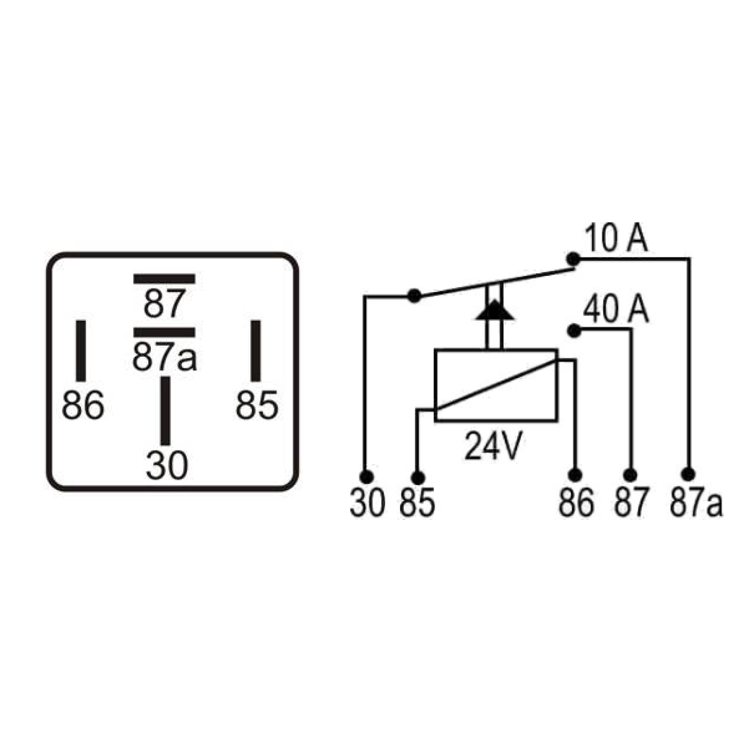 RELE AUXILIAR 24V 40A/30A 5T C/SUPORTE