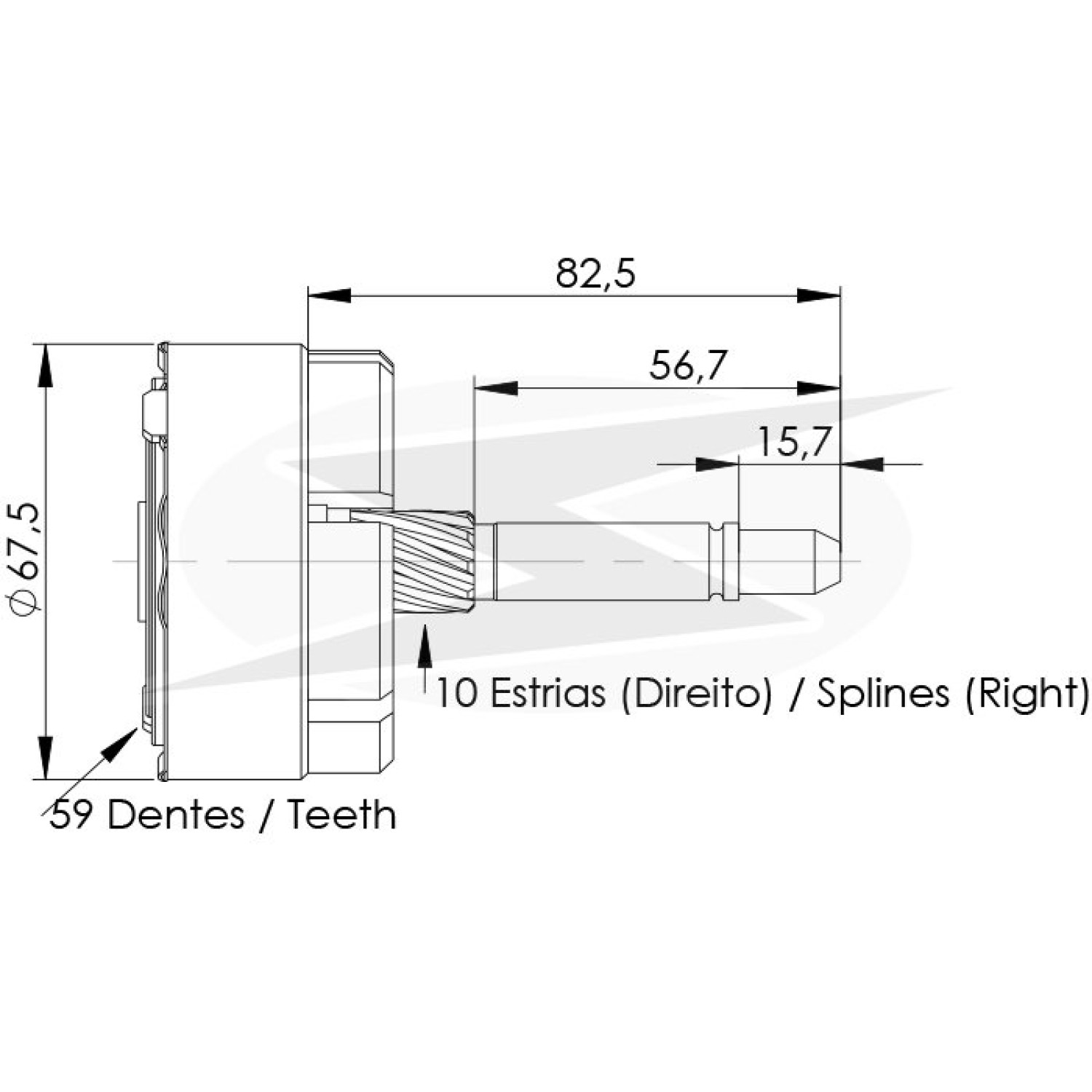 Número de furos de fixação 10 estrias